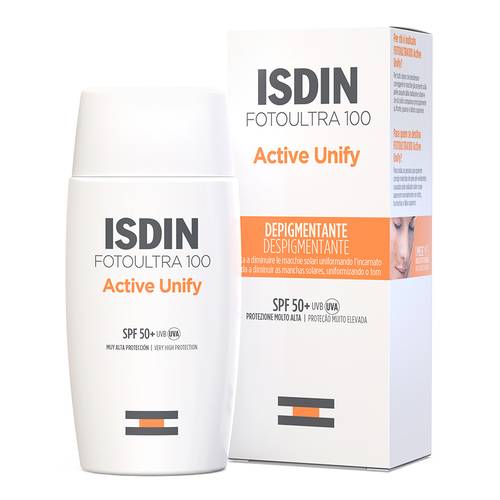 Foto Ultra 100 ISDINACTIVE UNIFY Descrizione Schiarisce e uniforma l'incarnato. Aiuta a ridurre e prevenire le alterazioni della pigmentazione dovute al sole. Aiuta a normalizzare la produzione di melanina grazie al DP3-Unify Complex, che agisce sulle fasi principali della melanogenesi. Offre una protezione dai raggi UVA, responsabili del processo di pigmentazione, 2 volte superiore rispetto al minimo richiesto per un fotoprotettore SPF 50+. SPF 106 UVA 49. La texture Fusion Fluid si fonde con la pelle. Modalità d'uso Applicare mattina e mezzogiorno. Riapplicare ogni 2 ore e tanto frequentemente quanto necessario. Per un risultato ott...